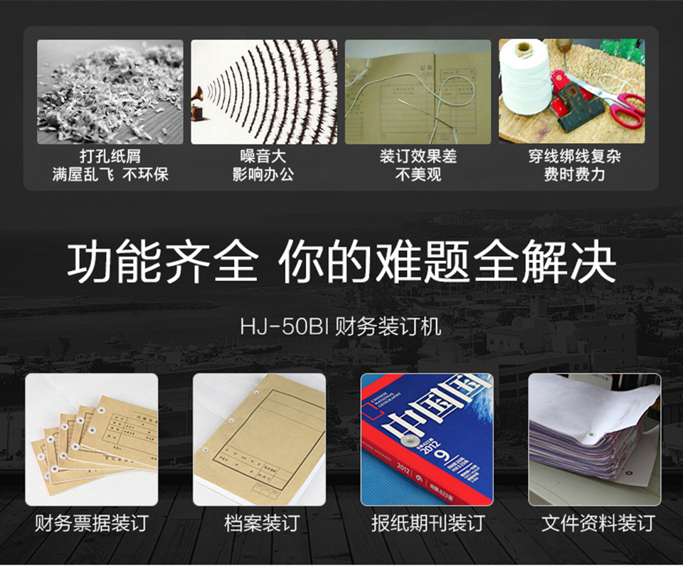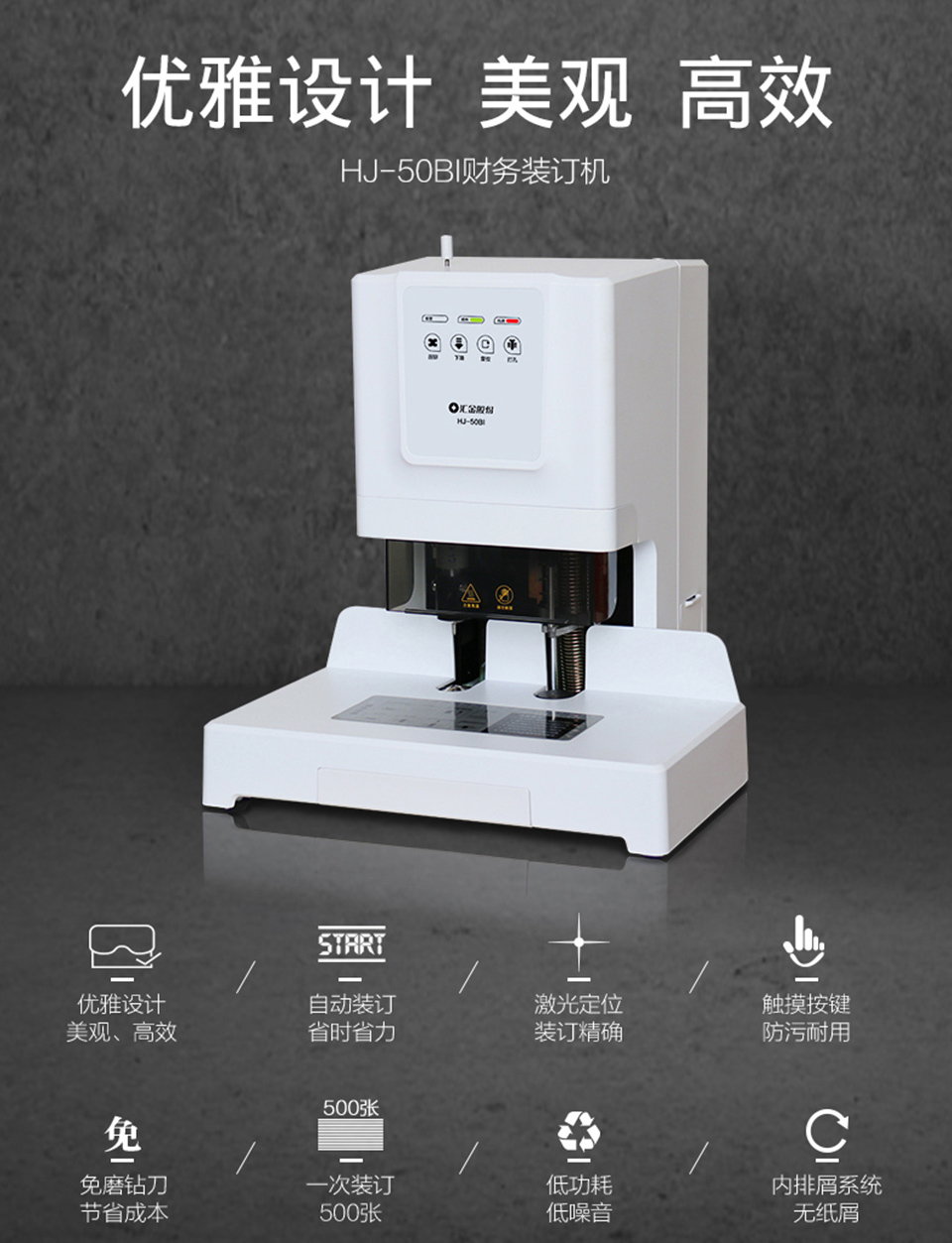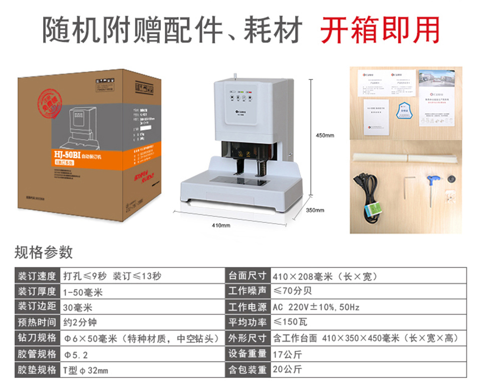 HJ-50BI自動裝訂機是一款自動化裝訂設備。該款產(chǎn)品外觀新穎,結(jié)構(gòu)精巧,操作簡單方便,性能穩(wěn)定,安全可靠,人性化設計,是財務辦公、檔案管理機構(gòu)規(guī)范保管的理想選擇。